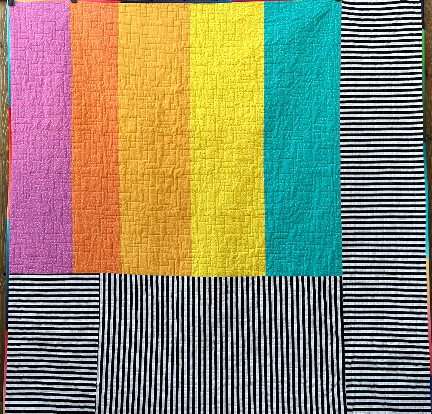 I used Tula Pink fabrics from a couple of different collections that were left over from other projects and added some black and white fabrics to create the square design.